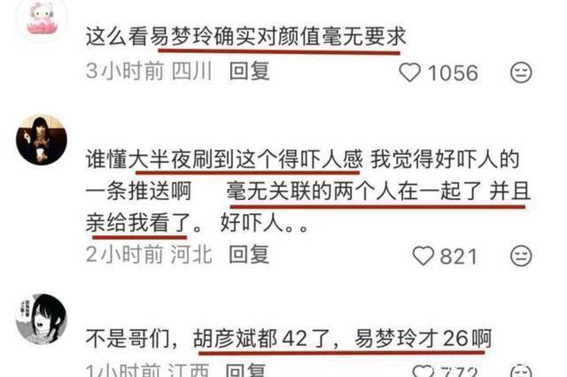 也有人认为大概率是真的,因为越离谱的两个人越有可能在一起, 一时之间,网友议论纷纷,开始深挖两人究竟是何时在一起的, 这不挖不知道,一挖吓一跳,原来他们两人能在一起还多亏了郝蕾! 音乐才子与穿搭博主 胡彦斌、易梦玲这个组合怎么看怎么诡异,真就像是AI合成的一样, 相信许多人都是一觉睡醒起来,打开手机就看到了这诡异的一幕, 整个人瞬间就不瞌睡了,神清气爽,想要确定一下这个消息的真假。