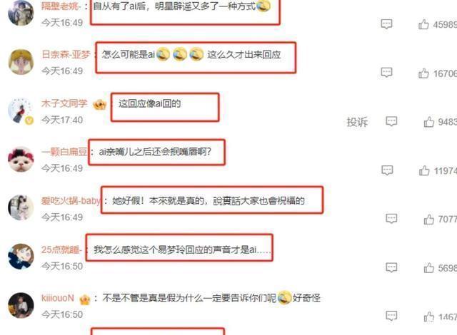 本以为这真的是易梦玲对恋情的回应,不料没多久就有人出来打假了, 该网友表示,易梦玲接到电话后以为是私生,所以才回应是AI, 明眼人都知道,那段视频不可能是AI,那么清晰、自然,根本看不出AI的痕迹。